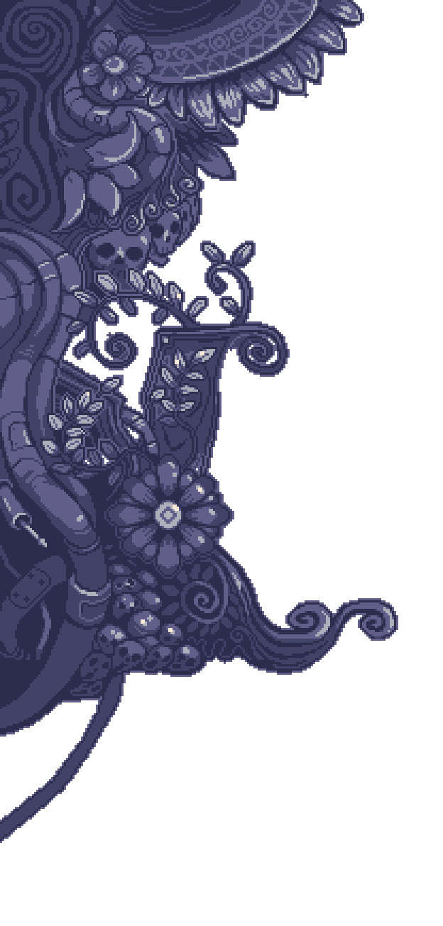 - Pixel art in a haunting monochrome palette by Pedro Medeiros